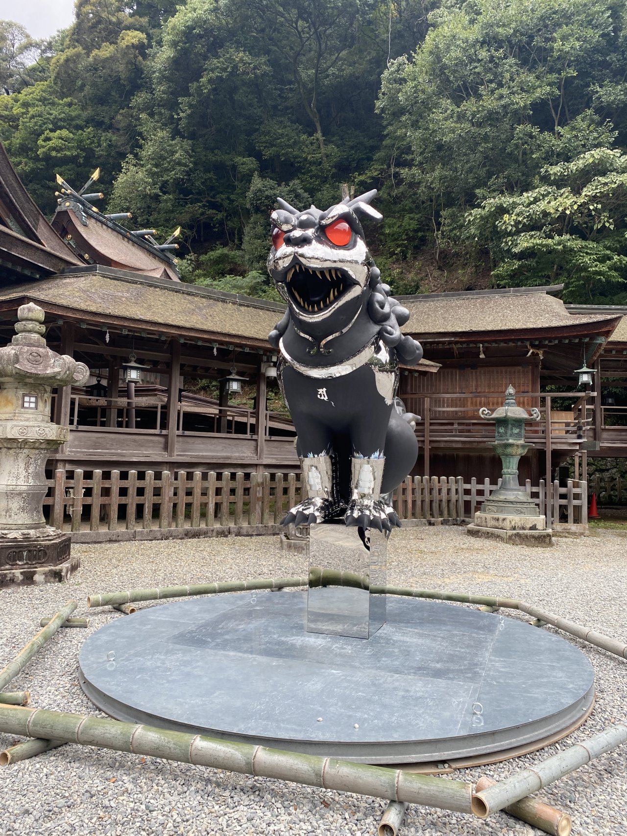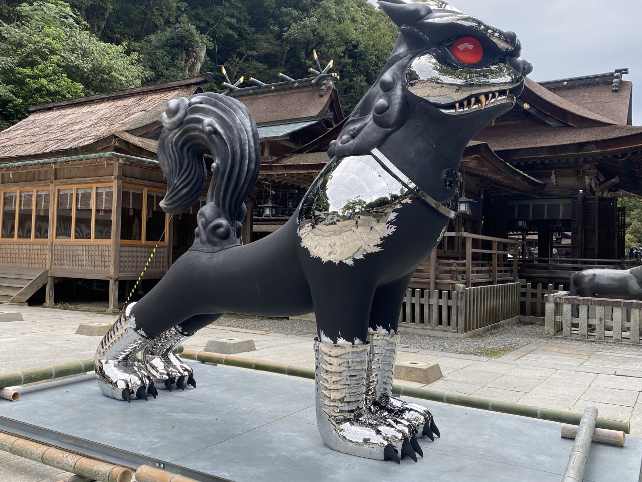 「瀬戸内国際芸術祭2022」の県内周遊事業「おいでまい祝祭」の一環の奉納展示をしている、現代美術作家「ヤノベケンジ」さんの作品「KOMAINU」がお出迎え!