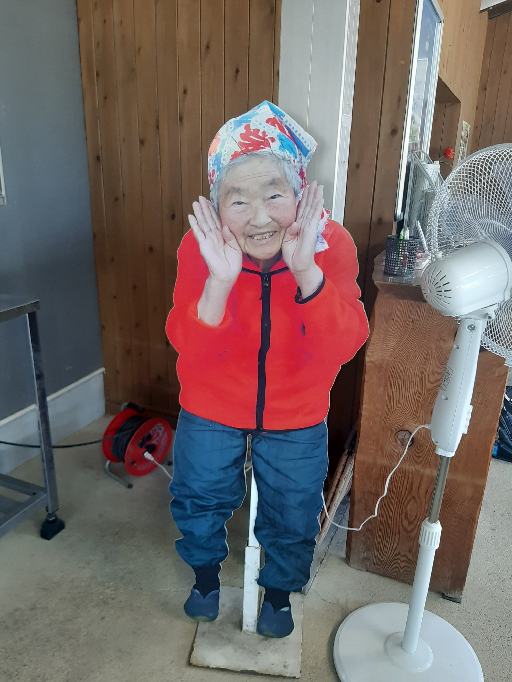 最近はご高齢という事もありお店にはあまりいらっしゃらない事が多いようですが代わりに等身大パネルが設置させていました。