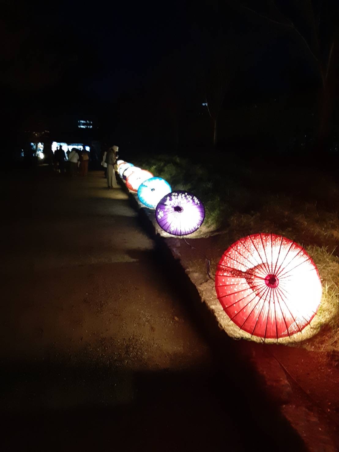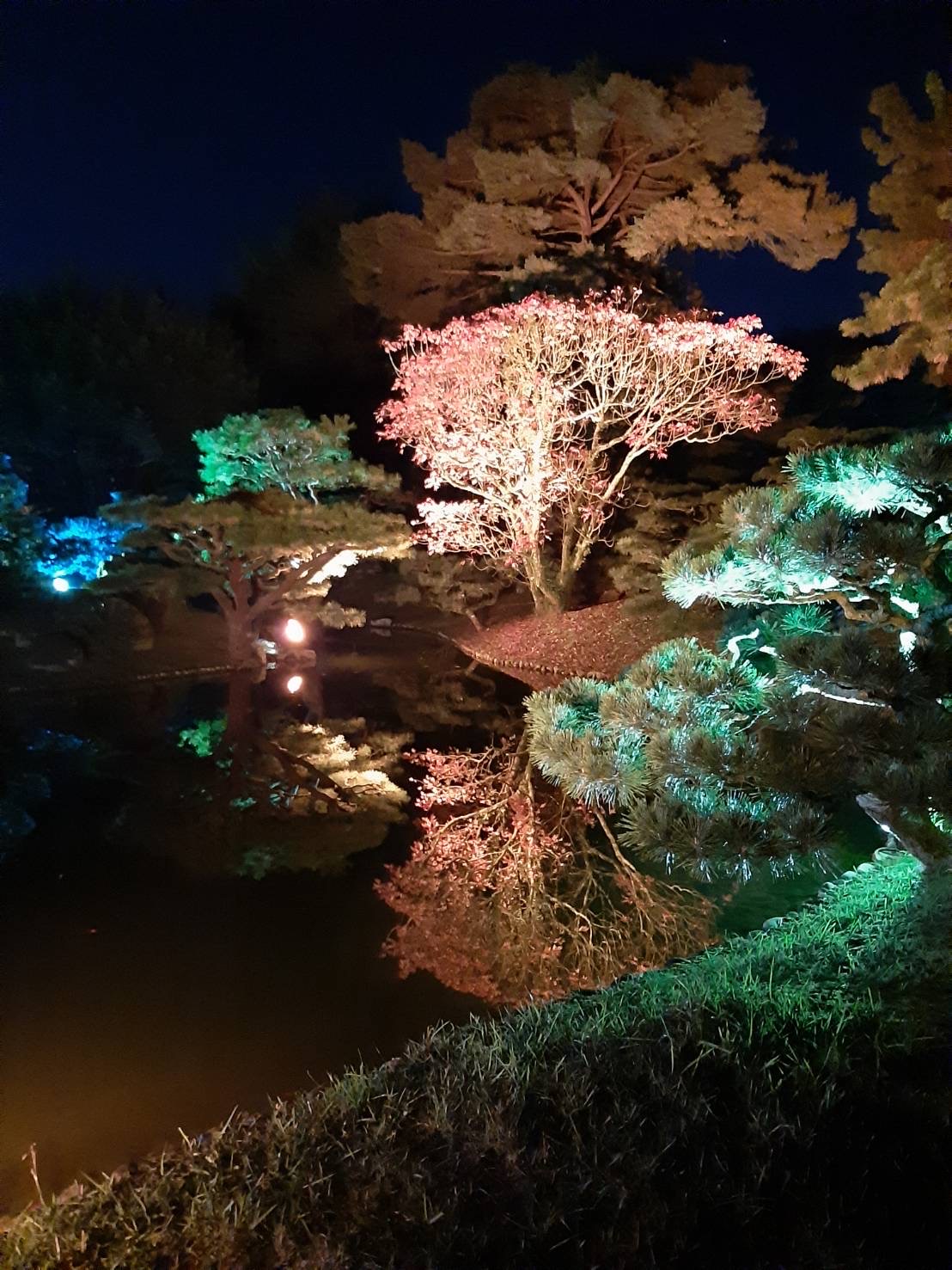 紅葉などの木々がライトアップされて幻想的な雰囲気でした。