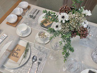 テーブルコーディネートにもこだわって展示しておりますので、ぜひご見学の際はご注目くださいませ!
