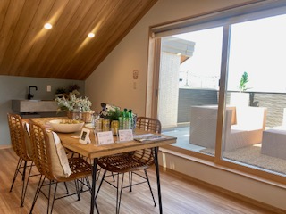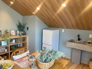 壁の青色がアクセントとなっており爽やかな印象を与えます。