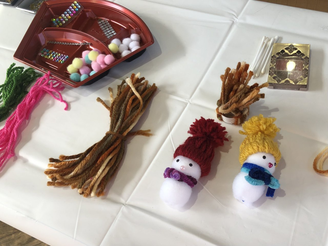 毛糸で雪だるまの帽子を作るところがなかなか難しそうでした!