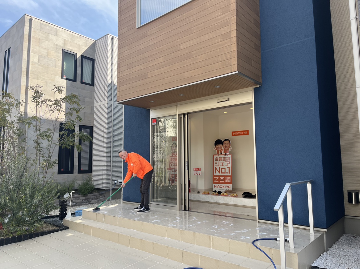 先日の晴れた日に伊丹展示場のエントランスをピカピカに磨きました!
