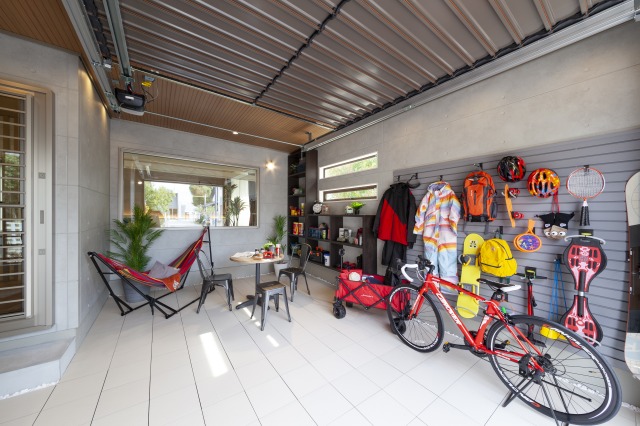 アウトドア用品やベビーカー、スポーツ用品など、屋外で使うものをまとめて置いておくことで、室内をすっきり保ちやすくなります。加えて、簡単なメンテナンスやDIY作業の場としても活用でき、暮らしの幅が自然と広がります。