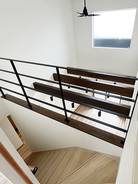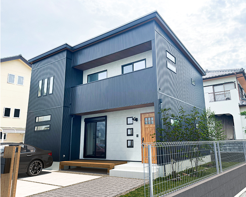 ガルバリウム鋼板の外壁やアイアンの手すりにより少し大人なデザインに