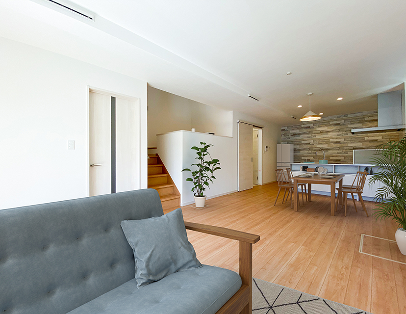 LDKにはスキップフロアを採用し、家族の集まるコミュニケーションの場に。