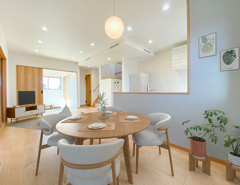 リビング横に和室があると、フローリングやシステムキッチンといった洋風の生活空間の中の、ちょっとしたアクセントになります。