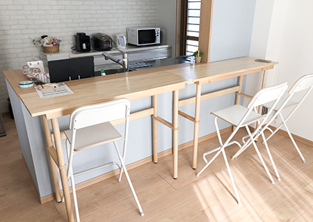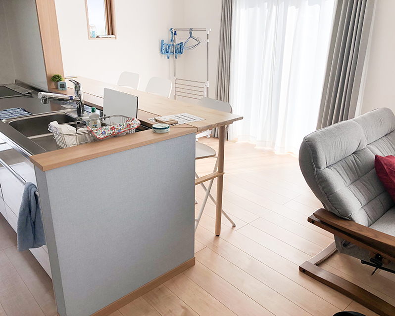 食事をしたり、勉強をしたりと、キッチン前カウンターはさまざまな使い方が可能です。