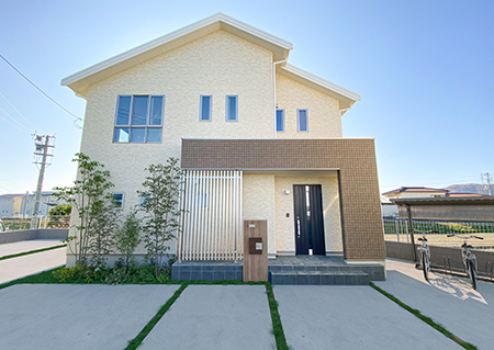 外観も内観に合わせた白い壁が特徴のナチュラルテイストのお家となっております。 -