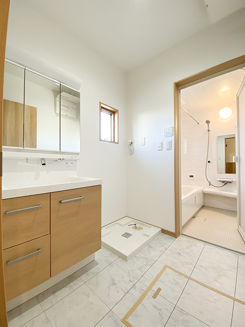 キッチン近くに水回りをまとめることにより、家事をしやすくしております。