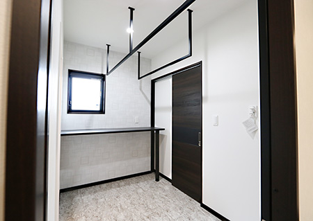 脱衣室は洗う、干す、畳むの一連の動作をこのお部屋で完結できるようになっています。