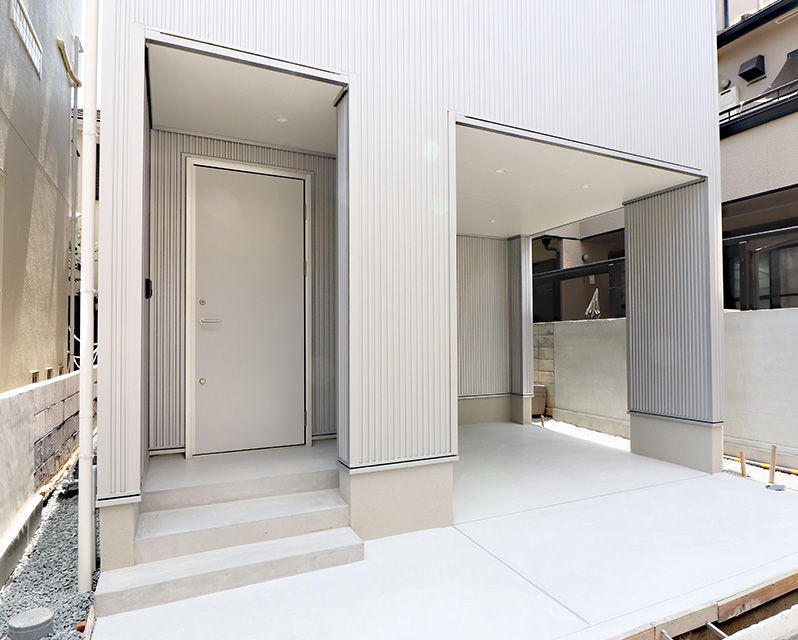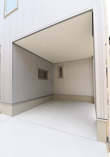 1台分のスペースのガレージを玄関横に設けることで出かけるときに動線が短いためら楽に車にたどり着くことができます。